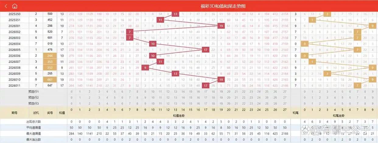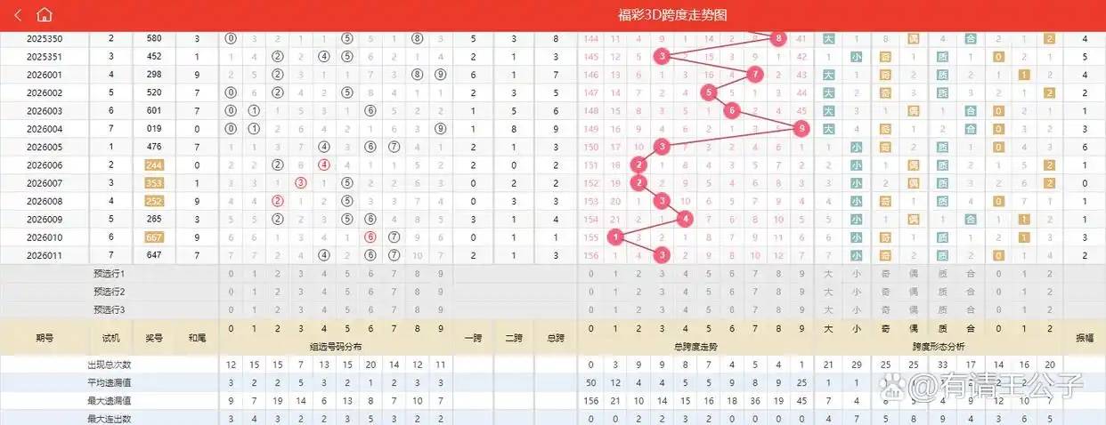 历史同期数据进一步印证了本期出号的合理性。梳理历年第011期开奖数据可知,0路号码出现频次占比达41%,本期6号的开出恰好契合这一历史统计特征;而4号在历史同期第011期的出号频率为8.7%,低于其全历史10.1%的均值,本次开出具备明显的回补属性。